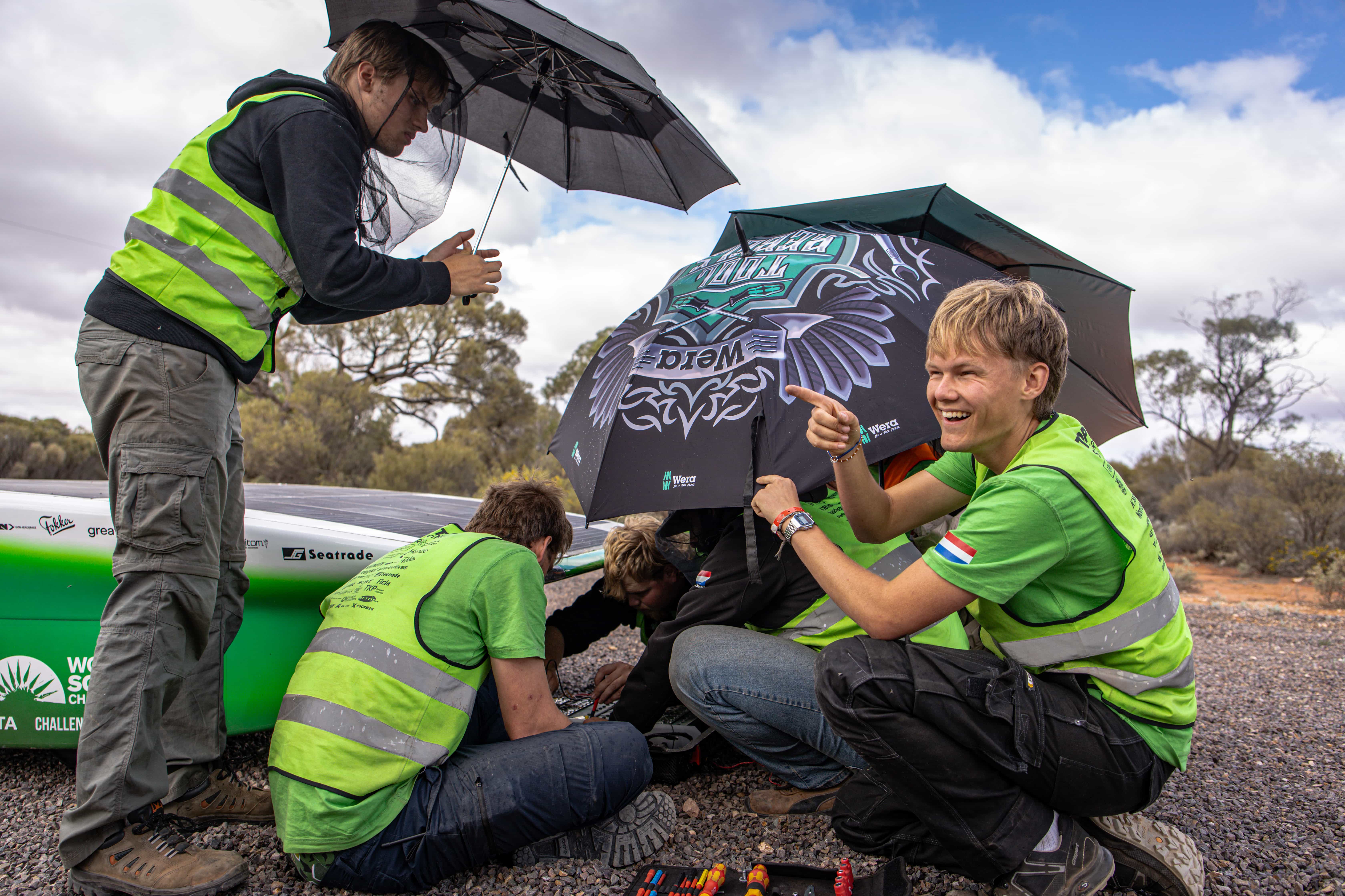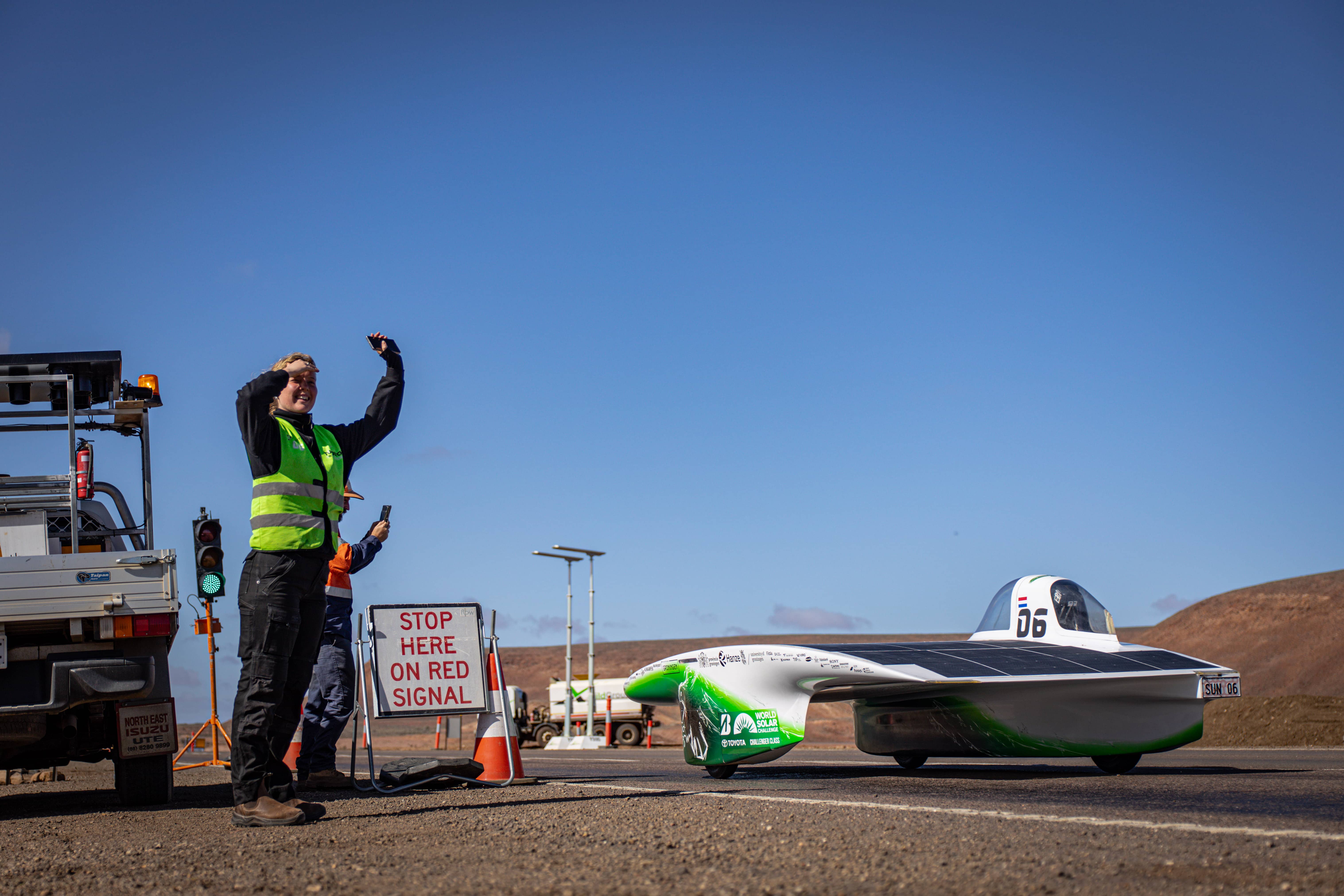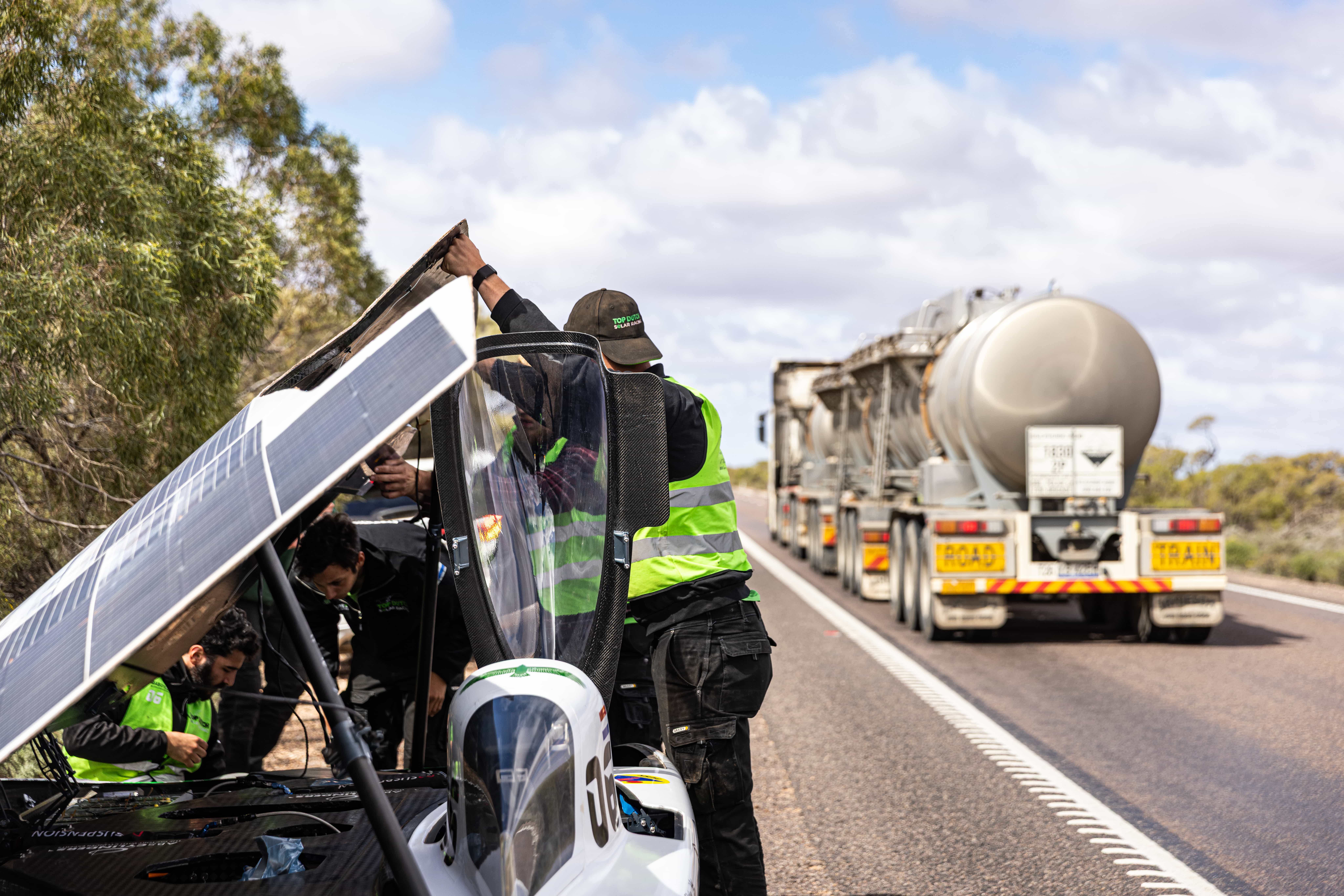 We replaced the PCB, ran test loops, and thought we’d solved it. And just when things seemed back on track, Green Falcon shut off again. By the time we made it to the Port Augusta control stop, we had lost our 10th position and slipped down to 14th as other teams passed. No one on the team really dwelled on the ranking, all that mattered was finding the fault and getting the car running reliably again.